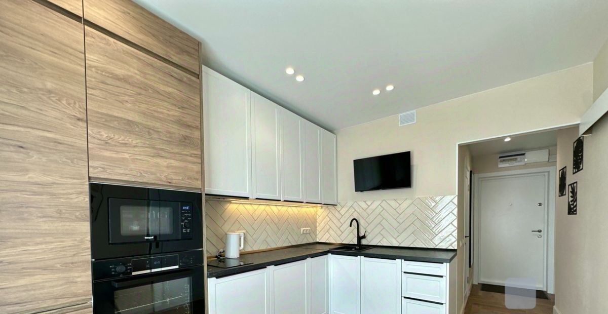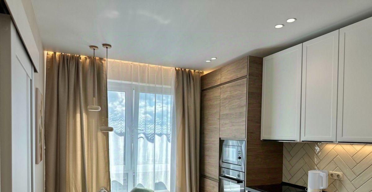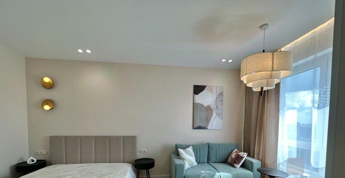 Хороший и качественный ремонт. Со вкусом подобранные предметы интерьера, шторы, стильные люстры, светильники. Полностью меблирована и оснащена всей необходимой бытовой техникой от ведущих производителей и брендов