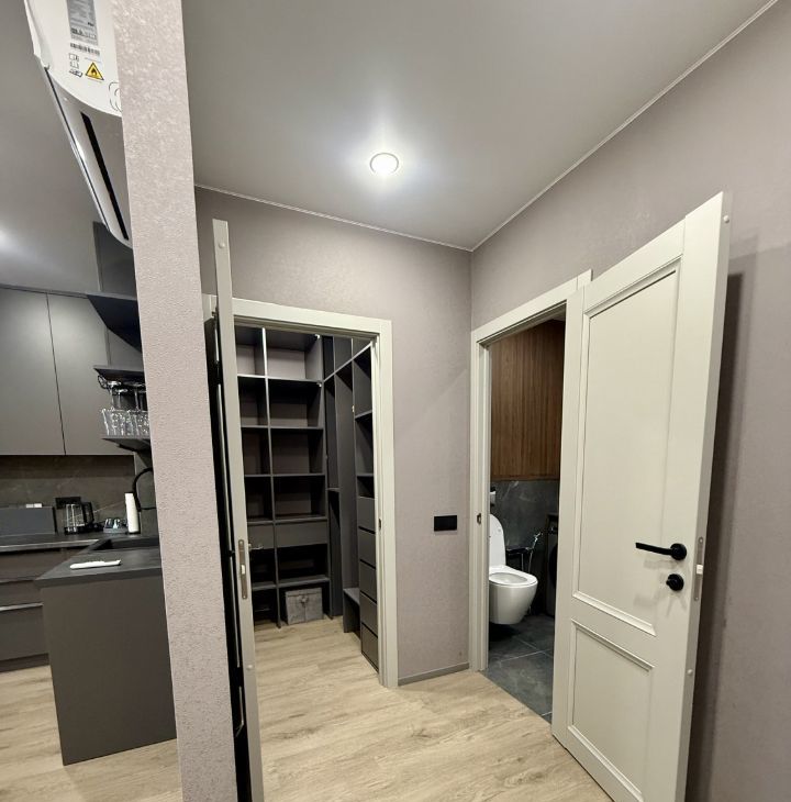 В прихожей зоне есть вместительный шкаф. И несомненным плюсом данной квартиры является просторная гардеробная комната.