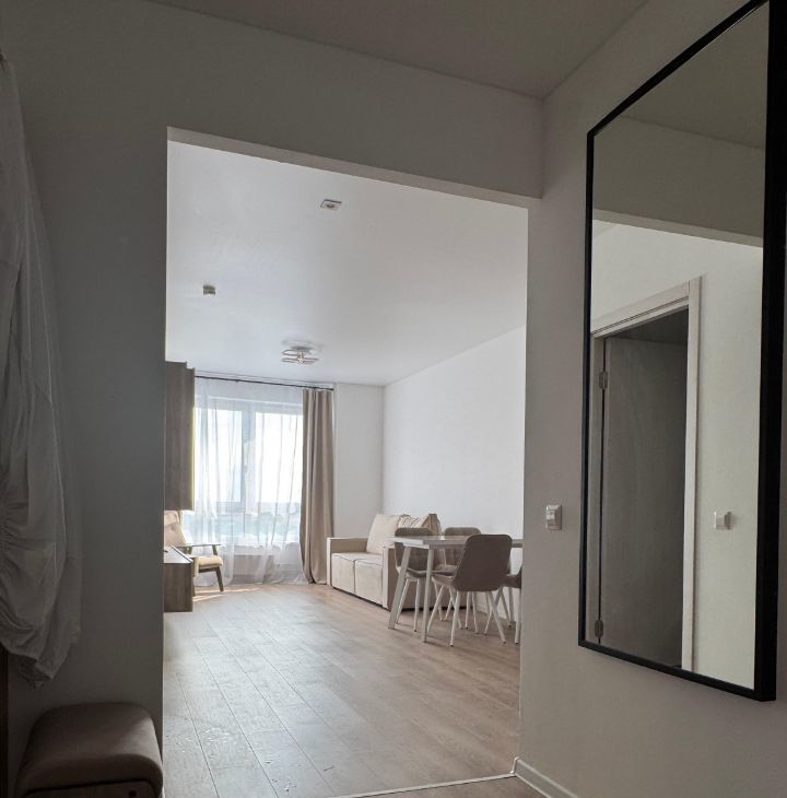 Светлая, просторная квартира, кухня гостиная + 1 спальня, гардероб.