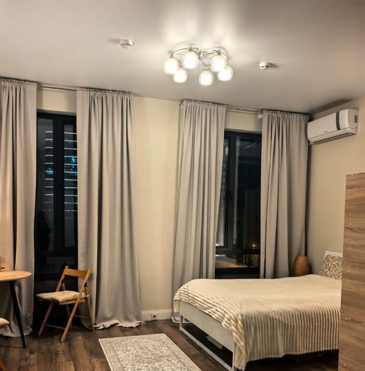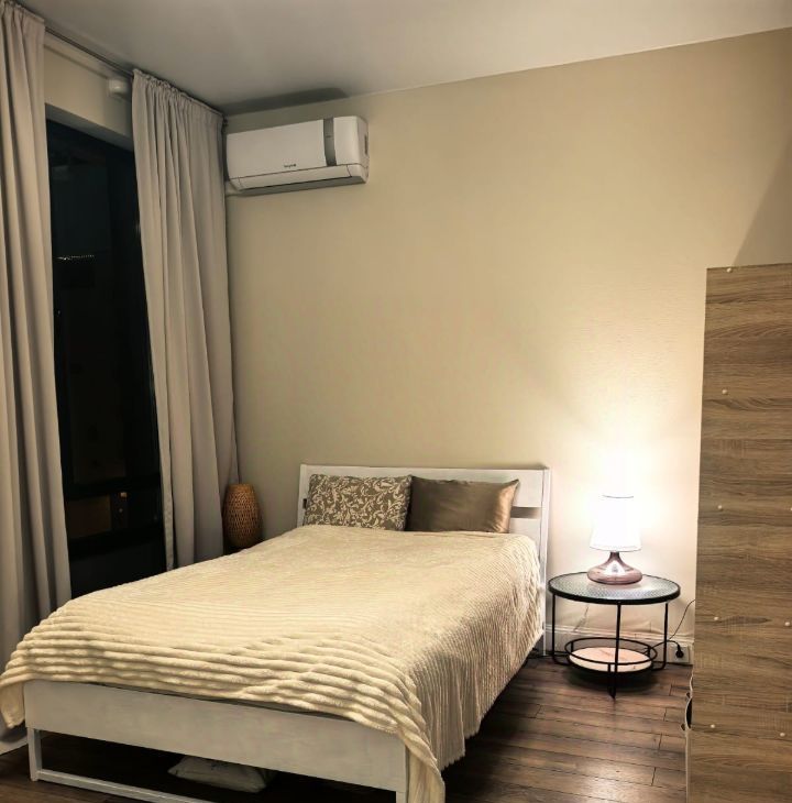 Апартаменты с евроремонтом, поэтому выглядят стильно и современно. В комнате есть вся необходимая мебель для комфортного проживания. (КРОМЕ КРОВАТИ С ФОТО) Кухня оборудована техникой: кондиционер, холодильник, стиральная машина и телевизор — всё, что нужно для комфортной жизни. Ванная комната оснащена душевой кабиной, что делает ее использование более удобным.