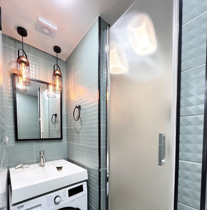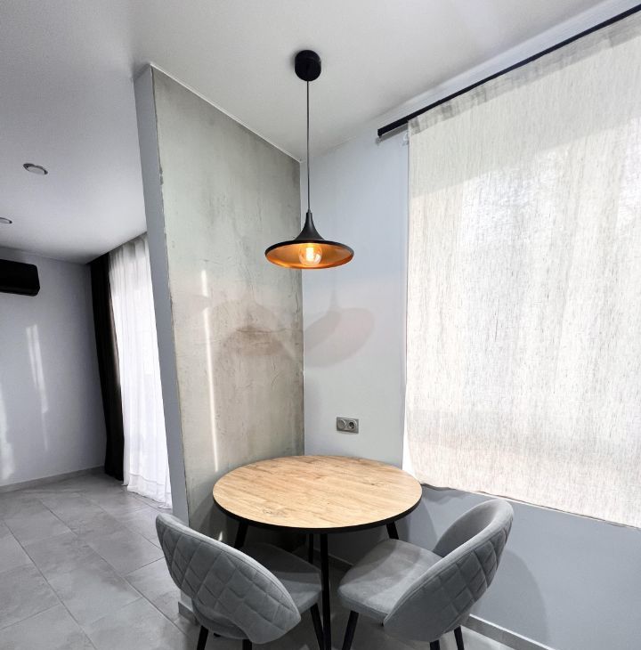 Квартира после капитального ремонта. Вся мебель и техника новая. Кондиционер. Интернет. Цифровое телевидение. Видео наблюдения. Система защиты протечки воды. Встроенный кухонный гарнитур, посудомоечная машина, холодильник, духовая печь с функцией СВЧ, вытяжка, встроенный фильтр для воды. В комнате два встроенных шкафа с подсветкой, кровать двуспальная. Санузел совмещенный душевая ниша, стиральная машинка сушкой. На длительный срок