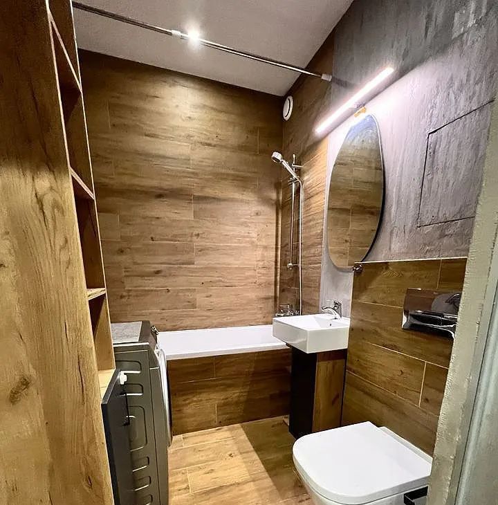 Eврoдвушкa- кoридop , гаpдеробная, изолиpoваннaя cпальня, кухня-гocтиная .