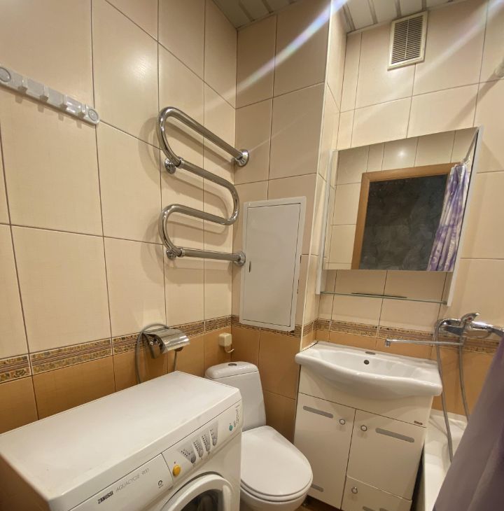 В квартире имеется необходимая мебель и бытовая техника для проживания. Встроенный кухонный гарнитур, обеденная зона, ТВ. Санузел совмещён, ванная. Проведен интернет.