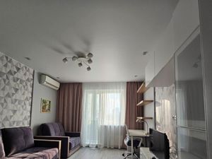 Квартира с дизайнерским ремонтом, полностью готова к проживанию. В комнате есть необходимая мебель, а кухня оборудована всей необходимой техникой: кондиционер, холодильник, телевизор и стиральная машина. В ванной комнате установлена ванна, отдельный санузел. Удобная планировка и наличие лоджии делают это предложение особенно привлекательным.