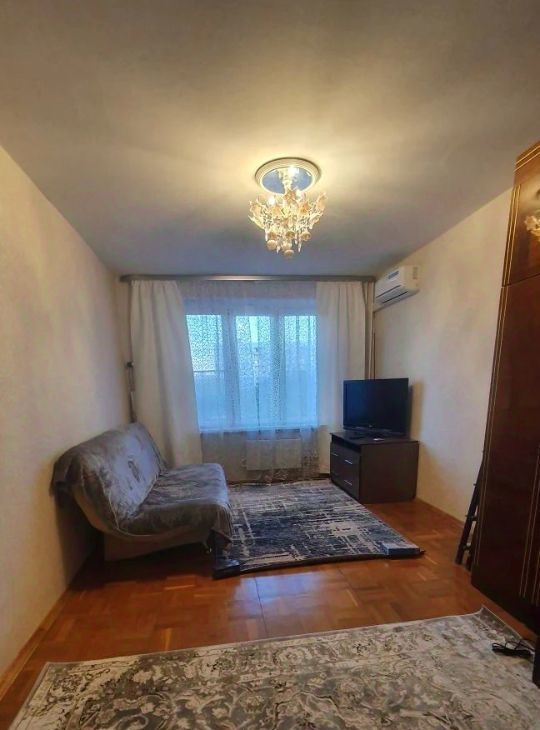 В квартире косметический ремонтй.23 . Есть вся необходимая техника: кондиционер, холодильник, телевизор и стиральная машина. В комнате 2 раскладных дивана, вместительный шкаф, тумба, телевизор. кухня оборудована всем необходимвм для приготовления пищи. Совмещенный санузел с ванной. Высота потолков составляет 2,64 м.