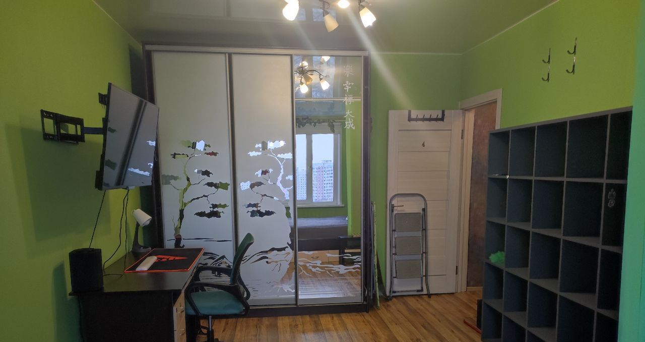 В квартире санузел совмещённый, с ванной. Окна выходят на лесопарковую зону и пруд,