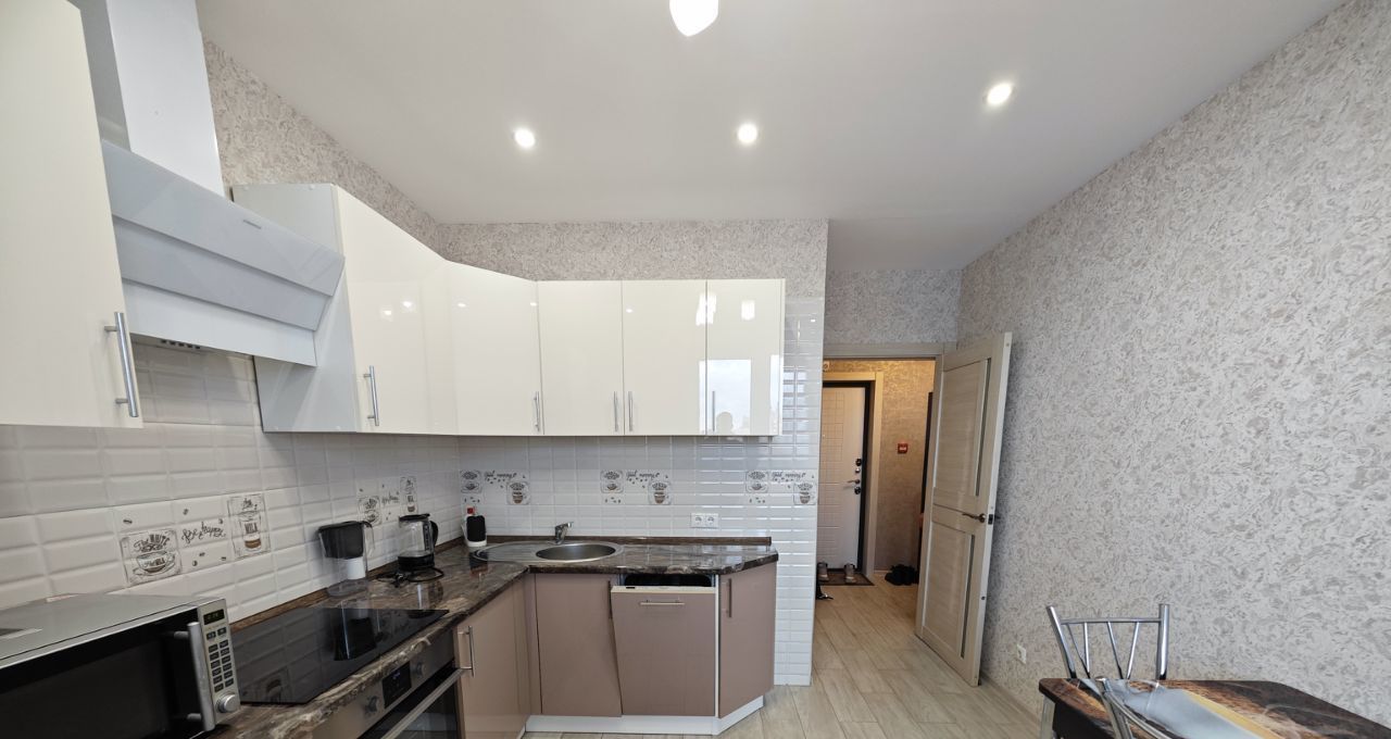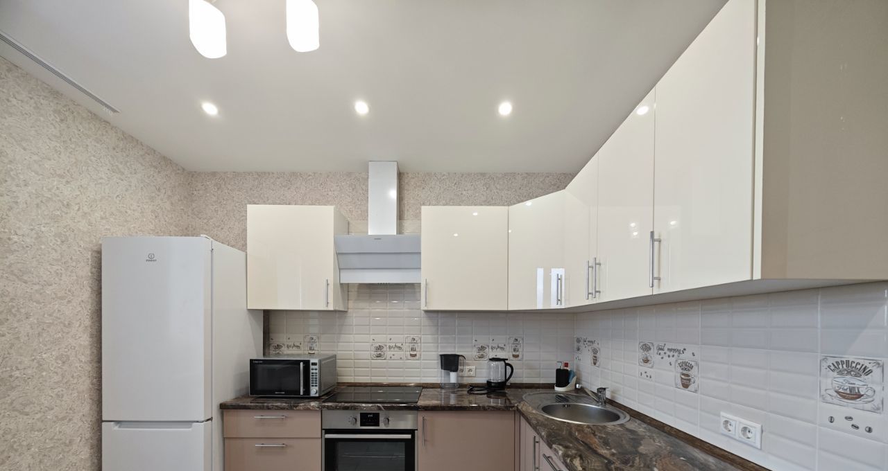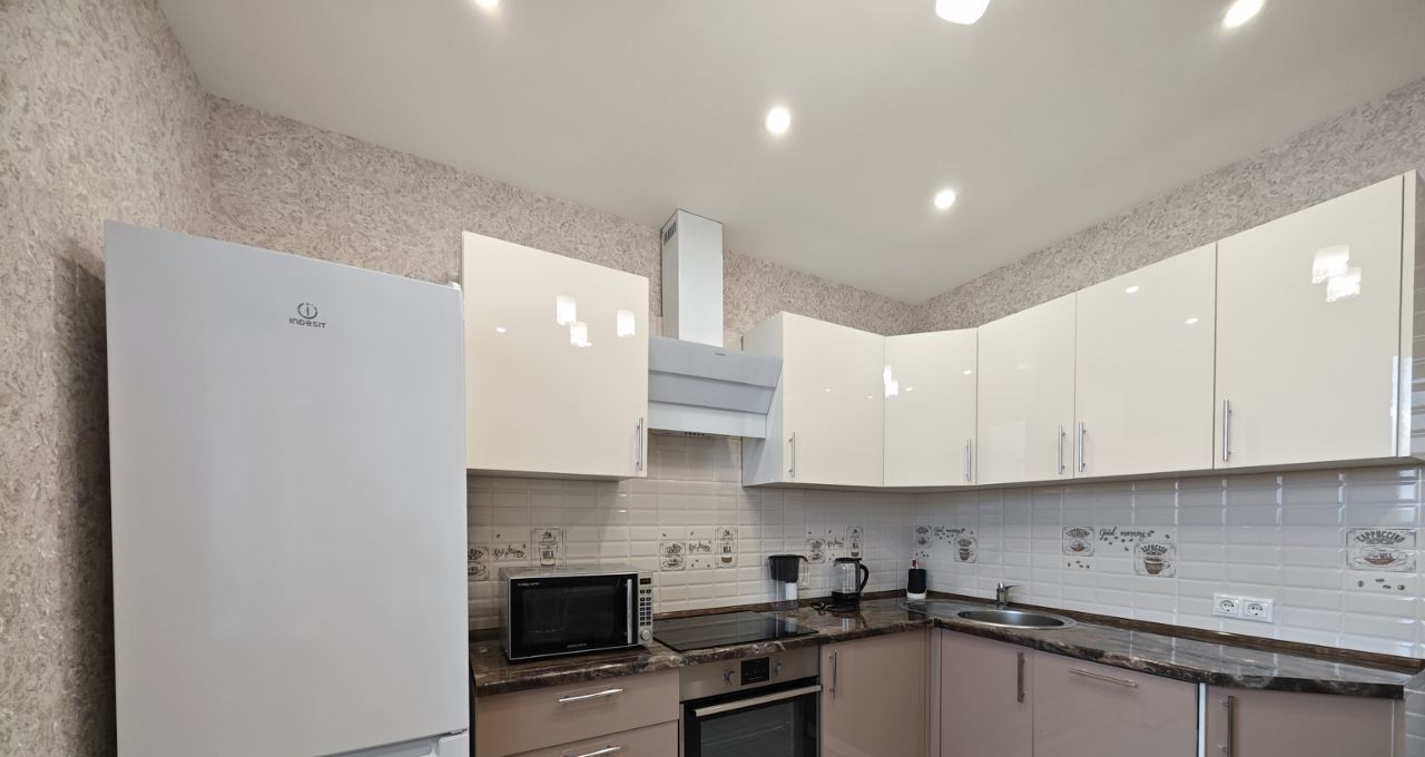 Посудомоечная машина Hotpoint, варочная панель Bosh, духовой шкаф Gorenje, вытяжка, холодильник, стиральная машина, интернет заведен, микроволновая печь, чайник.