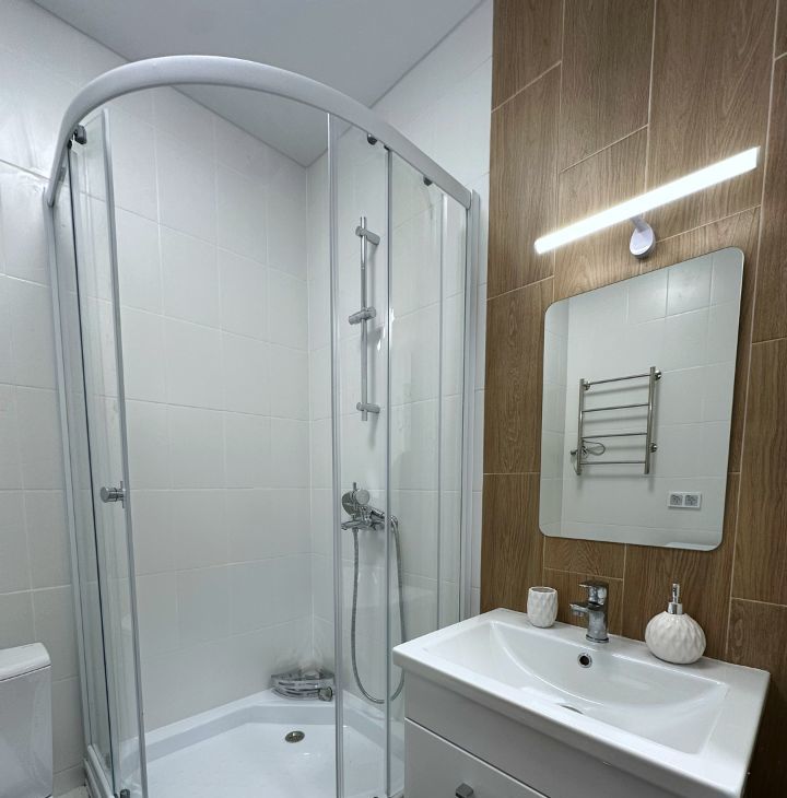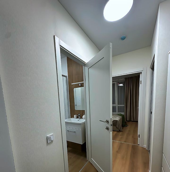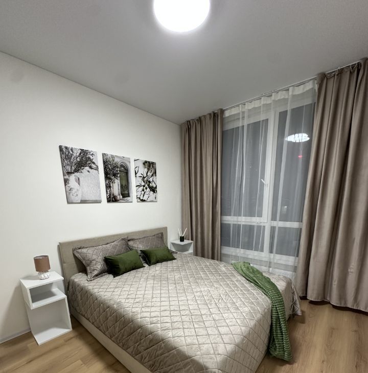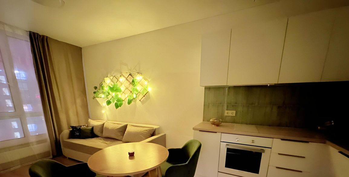 Квартира Сдается ВПЕРВЫЕ. Квартира ЕВРОДВУШКА: кухня-гостиная и отдельная спальня. СТИЛЬНАЯ квартира после свежего качественного ремонта. ВСЯ мебель и техника НОВЫЕ. Встроенный кухонный гарнитур со всей необходимой бытовой техникой, включая посудомоечную машину. Двуспальная кровать. Вместительный шкаф для одежды в спальне и прихожей. ПАНОРАМНЫЕ окна с видом во двор. Санузел совмещённый, импортная сантехника, душевая кабина. Красивый подъезд. Охраняемая территория.