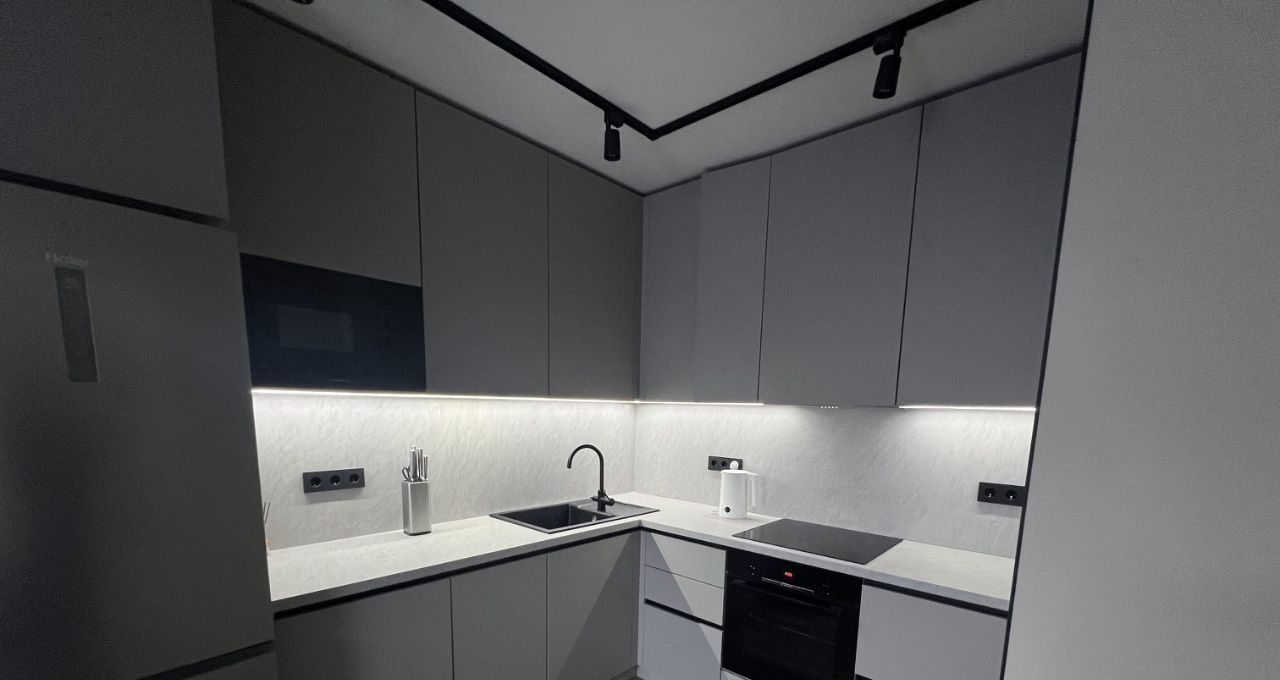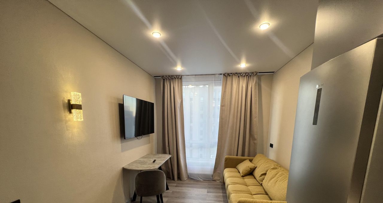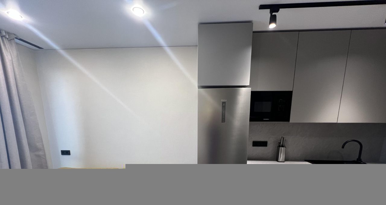 Сдаётся уютная однокомнатная квартира с дизайнерским ремонтом в новом доме 2025 года постройки. Общая площадь квартиры — 33 кв. м, кухня — 15 кв. м. Квартира расположена на 15 этаже 21-этажного панельного дома. Высота потолков — 2.7 метра, окна выходят во двор, что обеспечивает тишину и уединение.