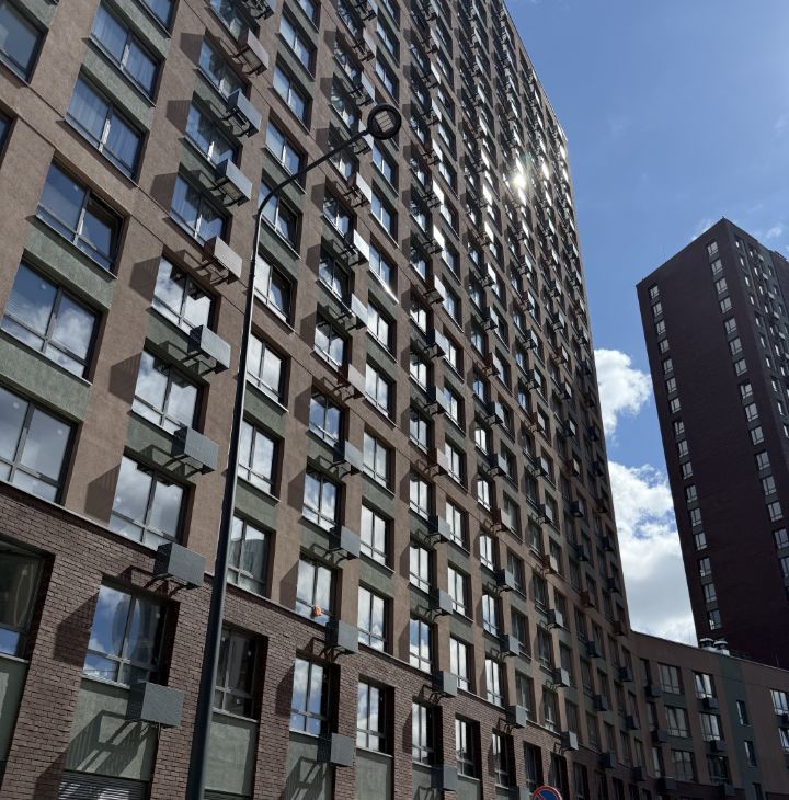 Продаётся просторная 1 комнатная квартира с панорамными окнами на 21 этаже монолитного 22-х этажного дома, построенного в 2025 году. Общая площадь составляет 33.1 м², из которых 15 м² занимает кухня - студия. Дом оборудован консьержем и имеет пассажирский и грузовой лифты.