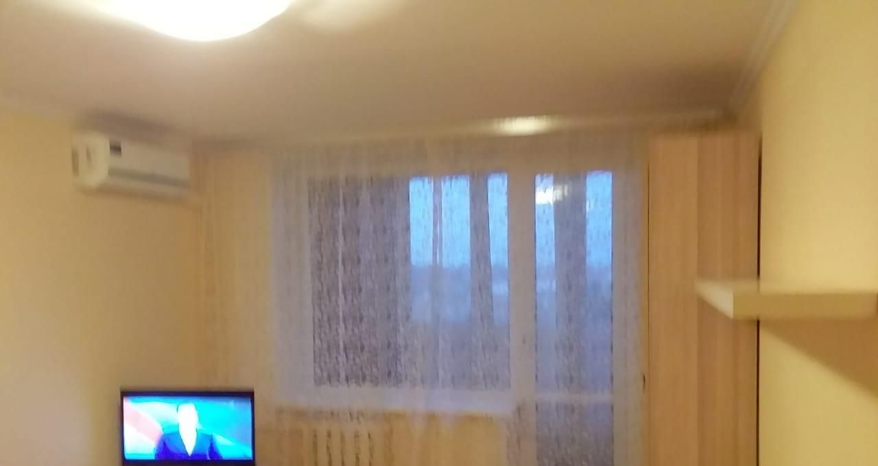 В комнате - кровать, комод, шкаф, телевизор, кондиционер.