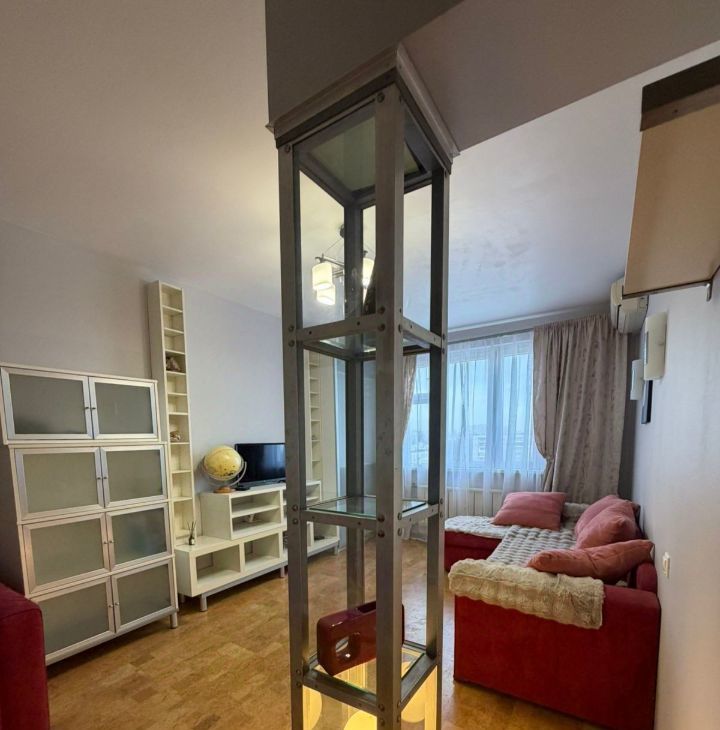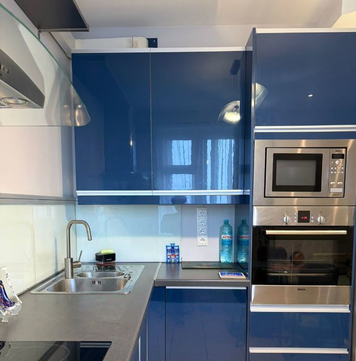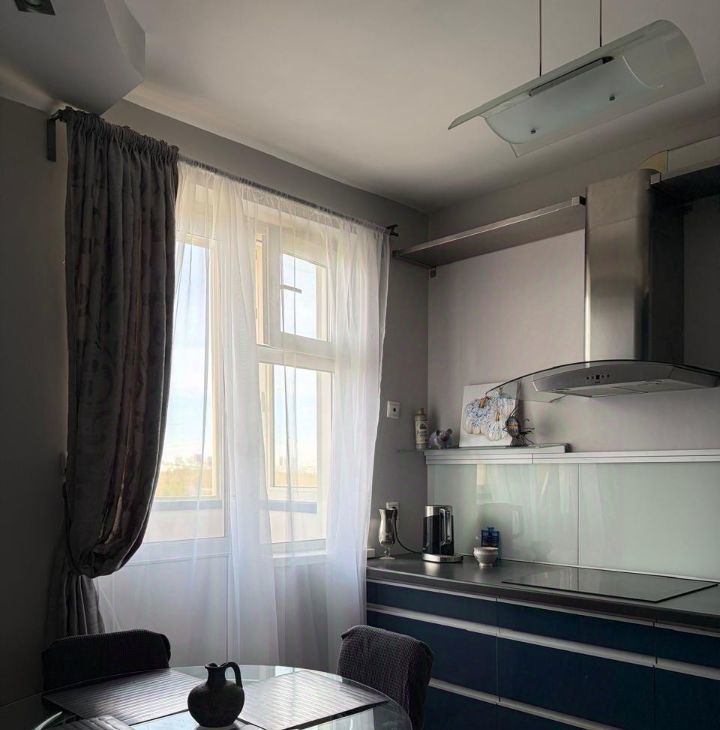 Уютная, много мест для хранения вещей (встроенные шкафы в комнате). Дорогая бытовая техника Bosch и Siemens. Удобный диван на кухне, раскладывается. Выход на чистый балкон из кухни.
