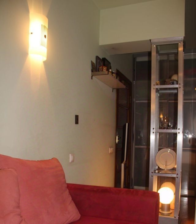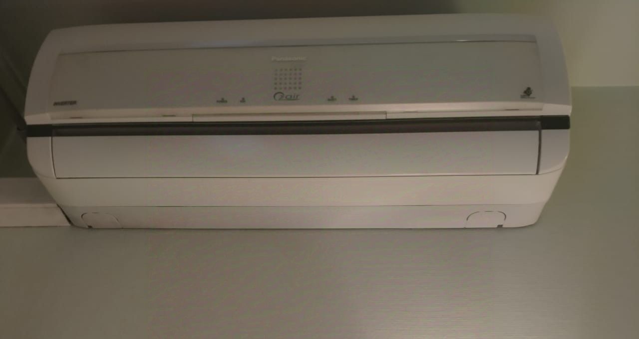В комнате этажерка с подсветкой (авторская работа художника оформителя). Кондиционер с функцией очистки воздуха Panasonic.