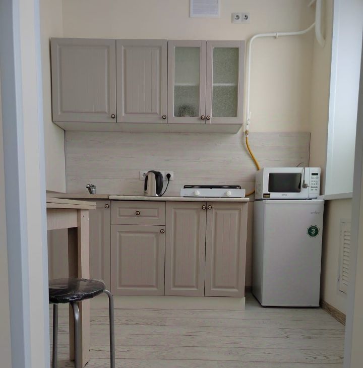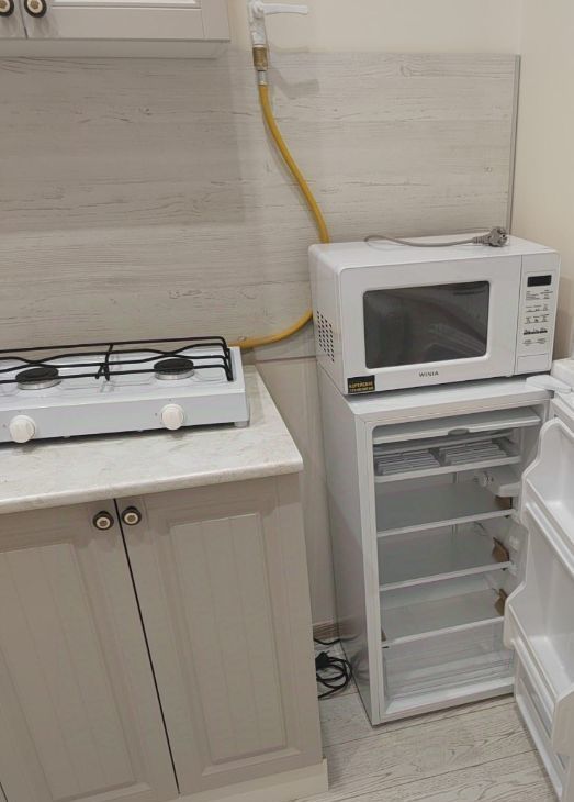 Кухня наборная: микроволновая печь, плита газовая 2 конфорки. Духовки нет.