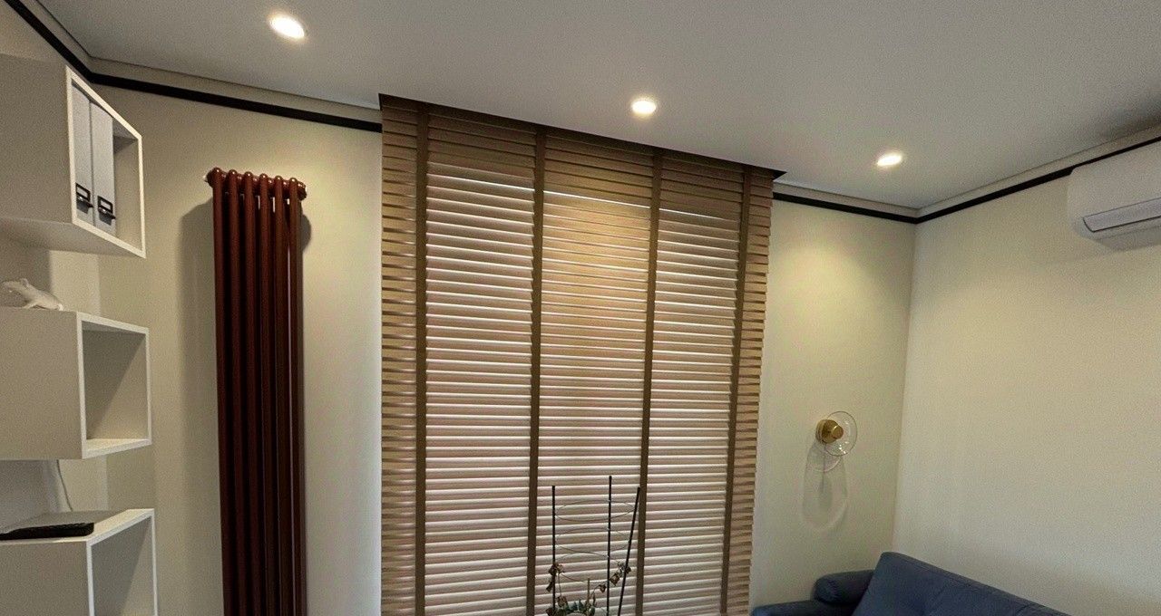 • Технологичный уют: Деревянные жалюзи с электроприводом позволяют управлять атмосферой в один клик. В зоне кухни-гостиной установлен подогреваемый пол и мощный кондиционер.