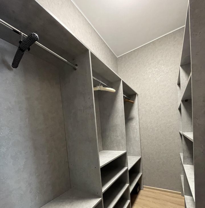 Спальная с гардеробной комнатой и выходом на лоджию; кухня совмещенная с гостиной (полноценный двуспальный диван); совмещенный санузел; прихожая с шкафом-купе.