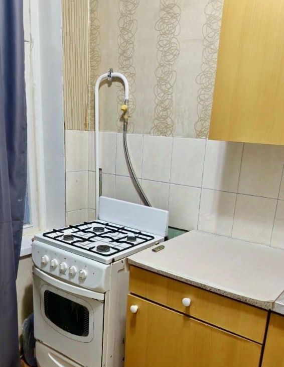 Квартира расположена на 5/5 этаже панельного дома. Из мебели имеются шкаф, двуспальная кровать, диван, стол и стулья на кухне. Также есть холодильник и газовая плита. Санузел совмещённый. Есть балкон. Окна выходят во двор.