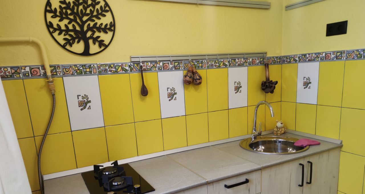 В квартире произведен косметический ремонт, размещена необходимая для комфортного проживания мебель и техника. Комната оснащена двуспальной кроватью, зеркальным шкафом, стенкой, телевизором и кондиционером. Кухня укомплектована новым кухонным гарнитуром с газовой плитой, установлены кухонный стол и стулья. В целях оптимизации пространства квартиры холодильник и стиральная машина установлены в коридоре. Сан. узел совмещен, есть застекленный балкон.