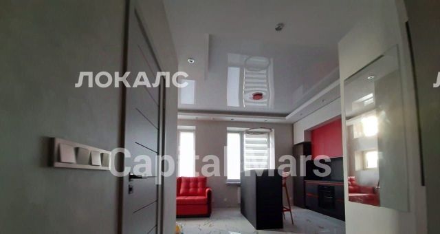 Предлагается студия в комплексе бизнес-класса Wellton Park, недалеко от метро "Народное Ополчение". В комнате имеется необходимая мебель: яркий практичный диван и шкаф с зеркалами. Кухонный островок оборудован стильным гарнитуром и комплектом встроенной техники, включая духовую печь. Установлена стиральная машина. Для комфорта - кондиционер.