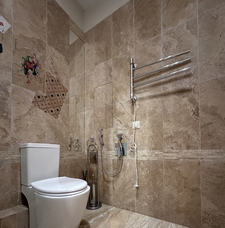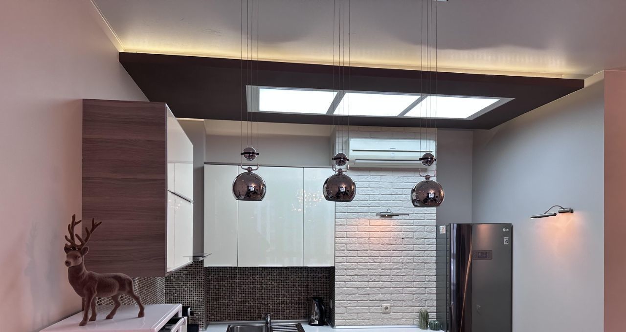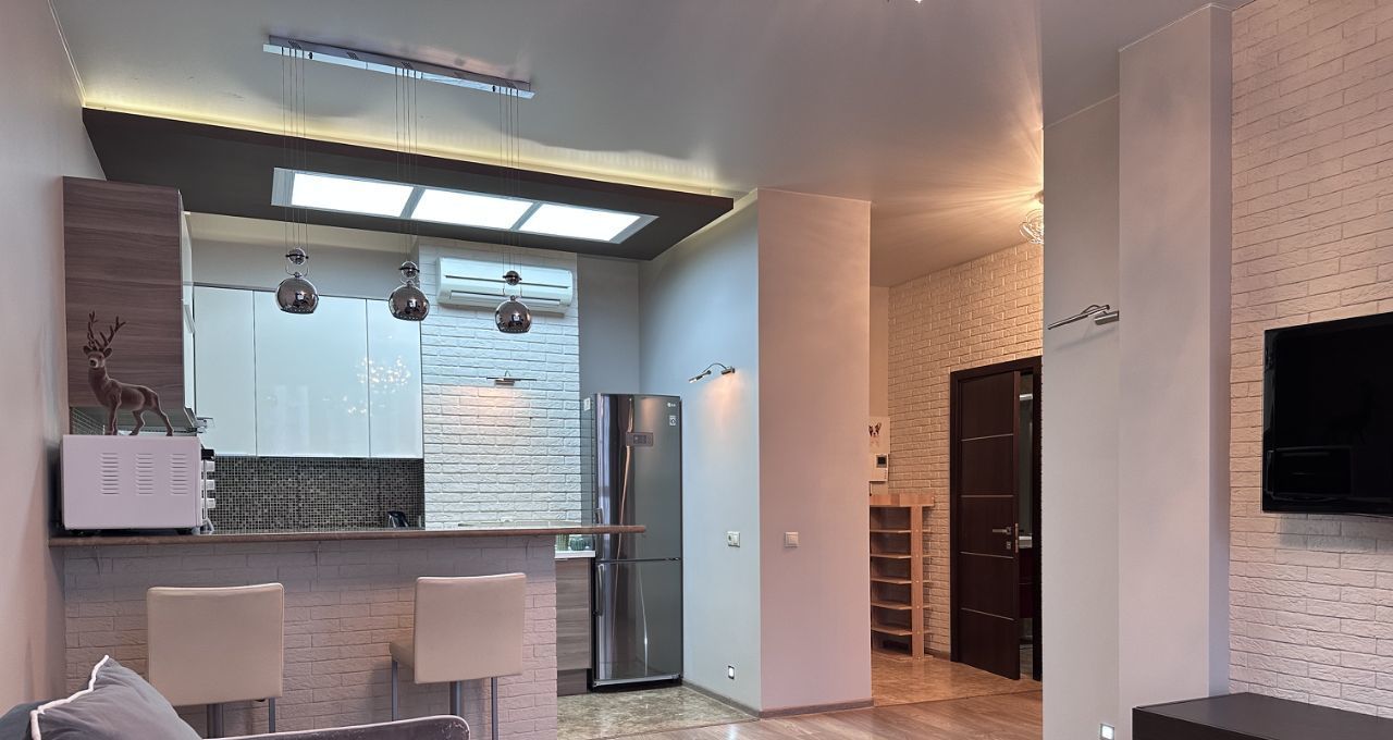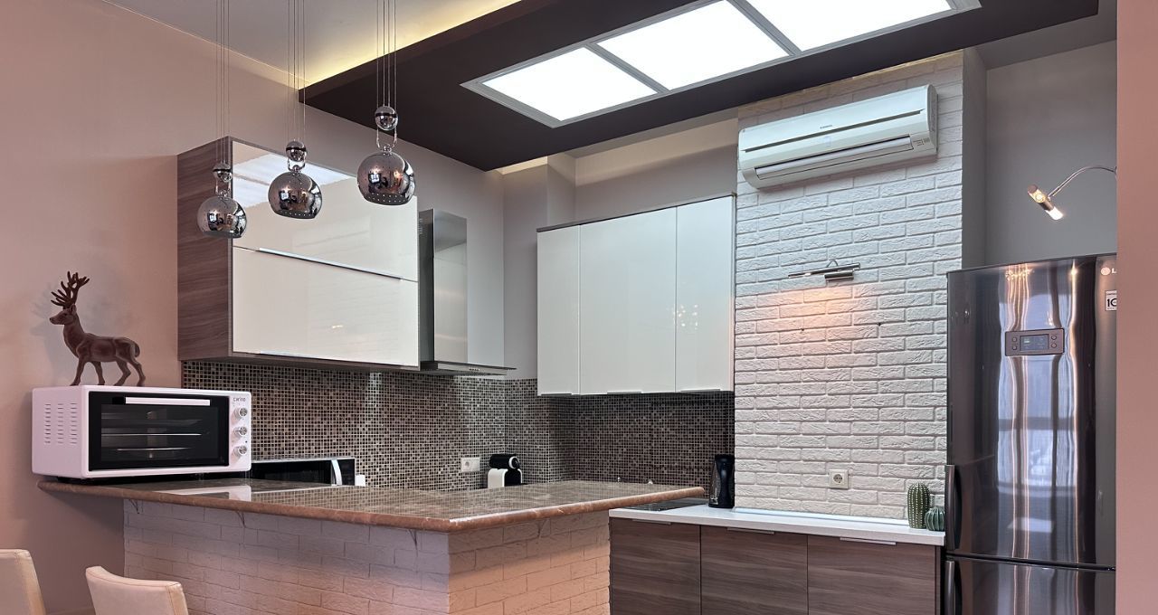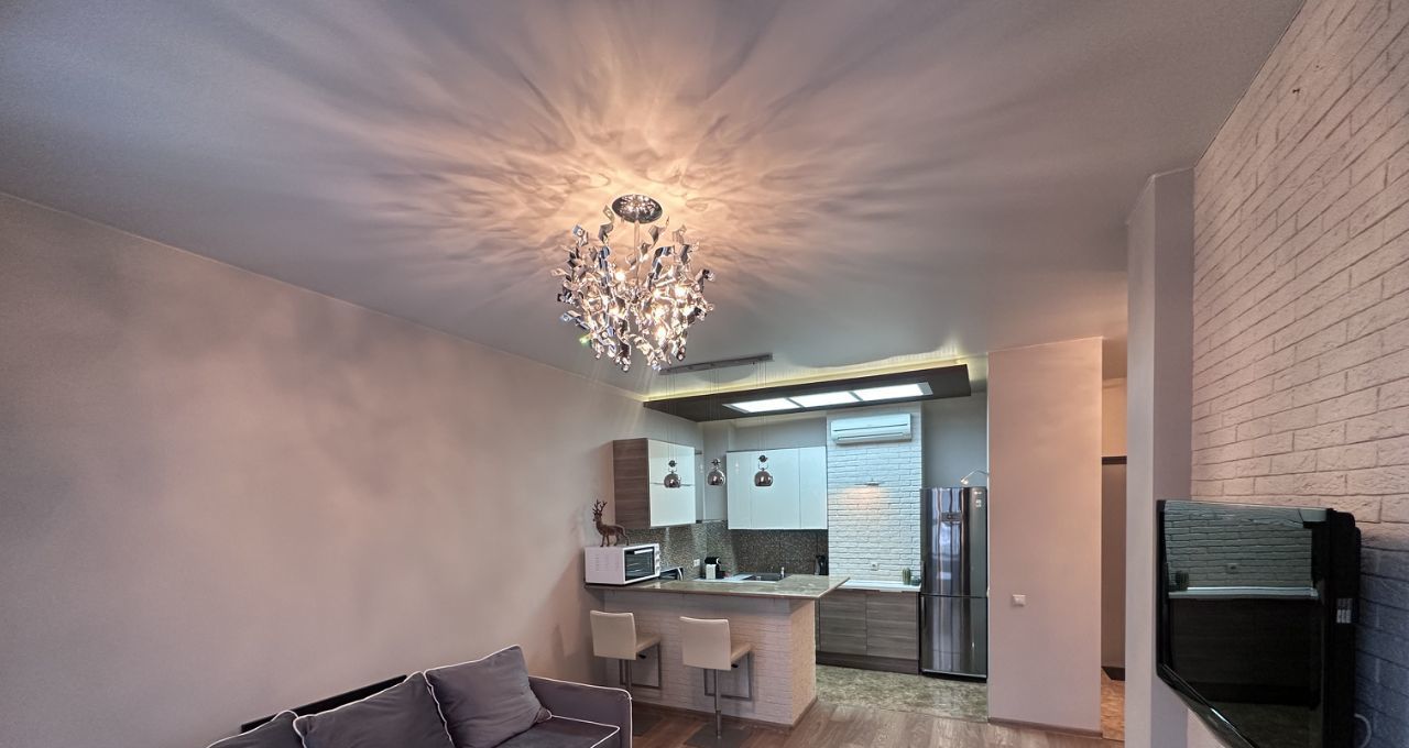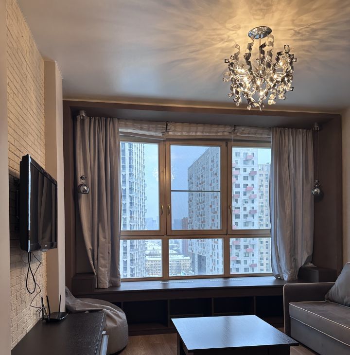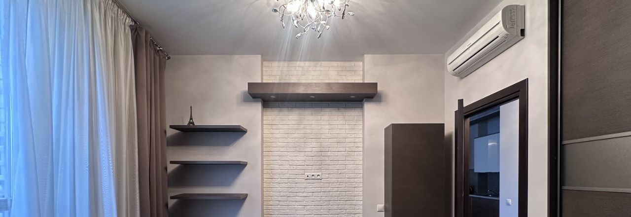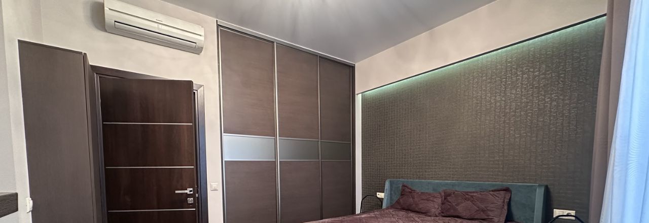 В квартире выполнен косметический ремонт, что делает её светлой и ухоженной. К вашим услугам вся необходимая мебель и техника: кондиционер, холодильник, посудомоечная и стиральная машины, телевизор, в зоне гостиной раздвижной диван, в спальне
