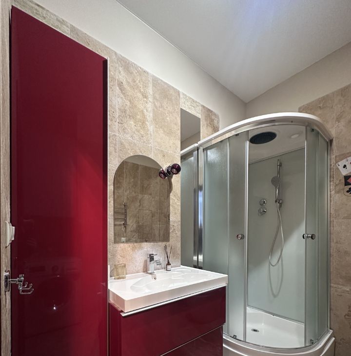 Санузел совмещённый, оборудован душевой кабиной.