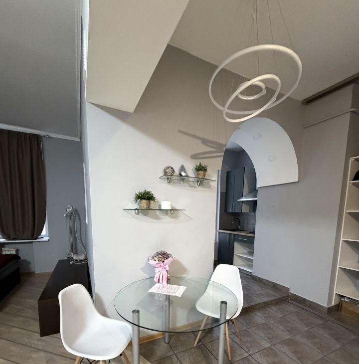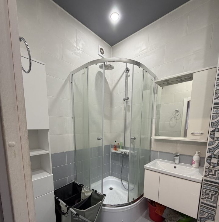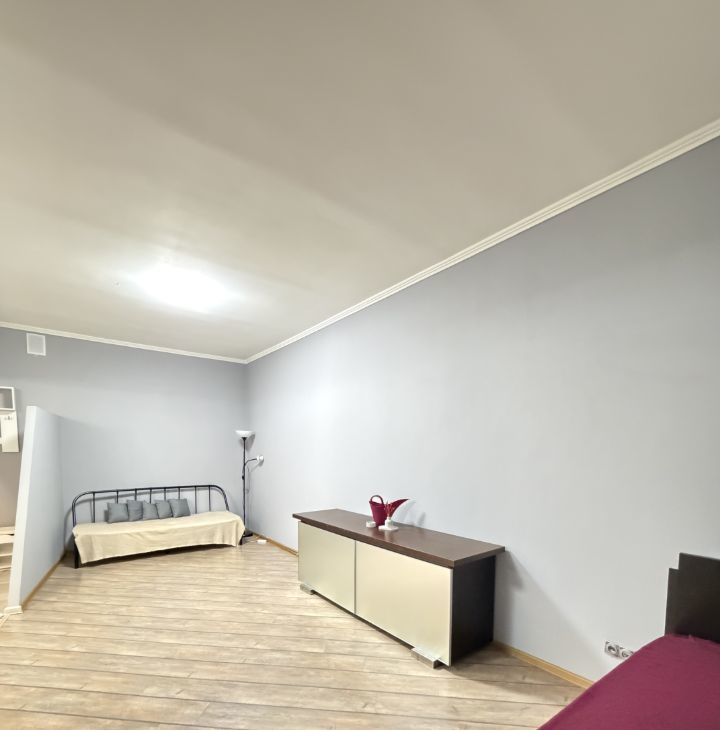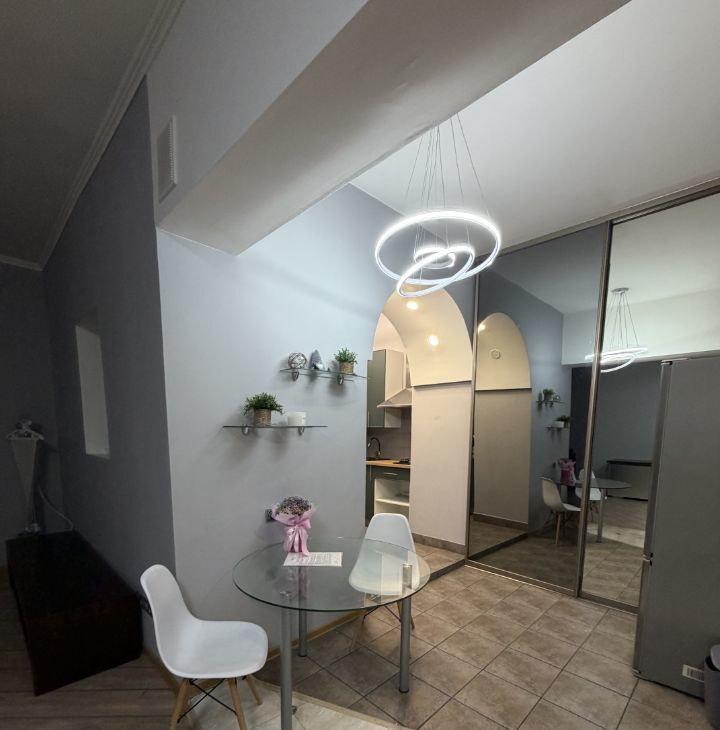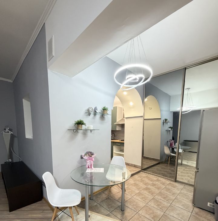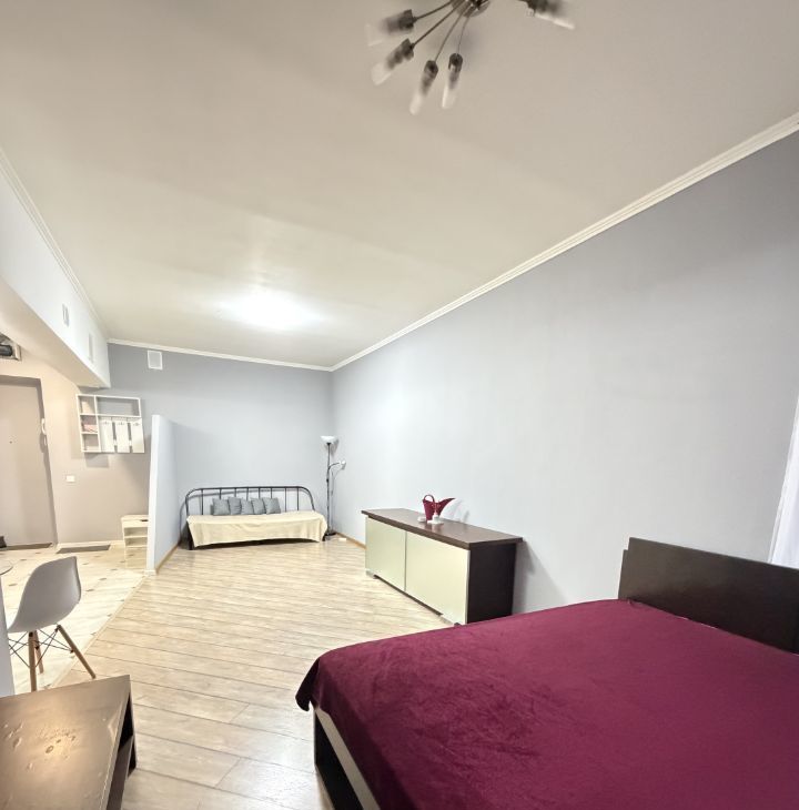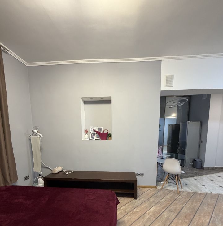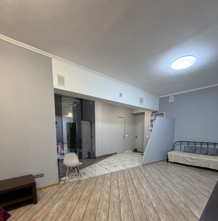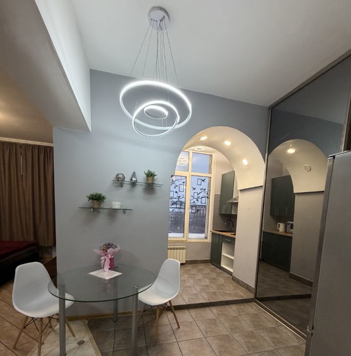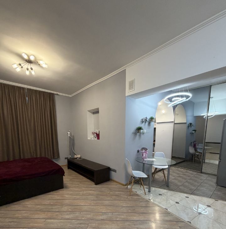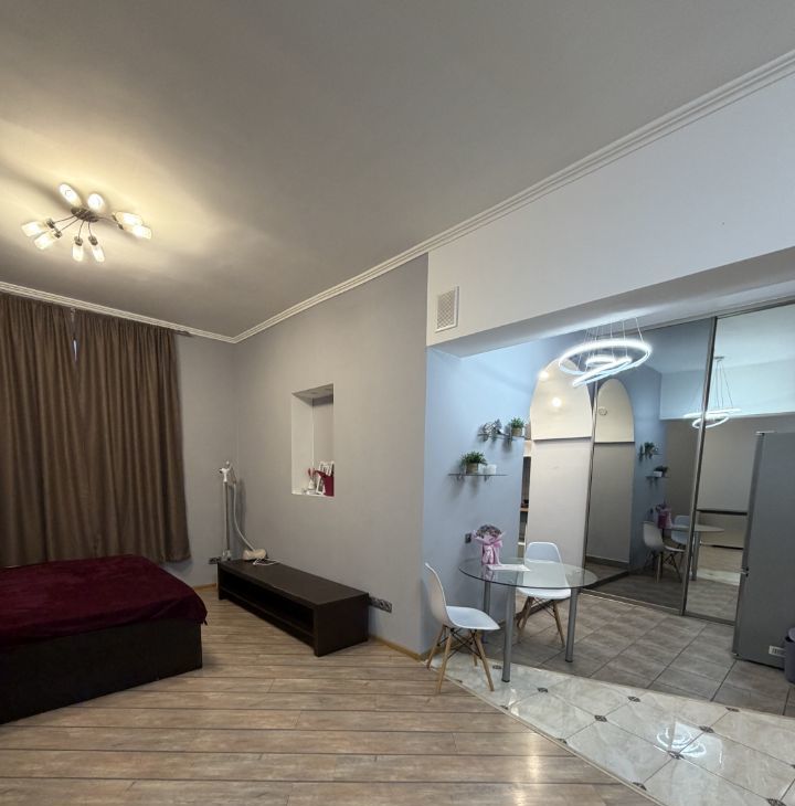 В квартире выполнен евроремонт, что сразу создаёт атмосферу уюта и комфорта. Просторная жилая площадь в 25 кв. м. и кухня 10 кв. м. обеспечат удобство проживания. В комнате есть вся необходимая мебель для жизни, а кухня оборудована современной техникой: холодильником, телевизором и стиральной машиной. Санузел совмещённый, с душевой кабиной.