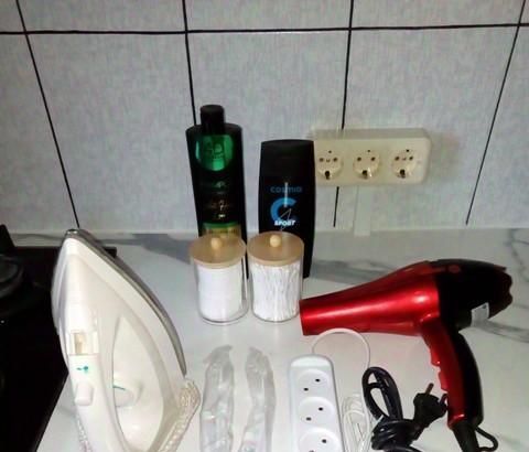 Возможна комплектация для 1-2 человек: постельные принадлежности, полотенца, посуда, утюг, гладильная доска, фен, шампунь, гель, зубные щетки (то что на фото). Заезжай и живи. Возможен заезд со своими вещами и посудой.
