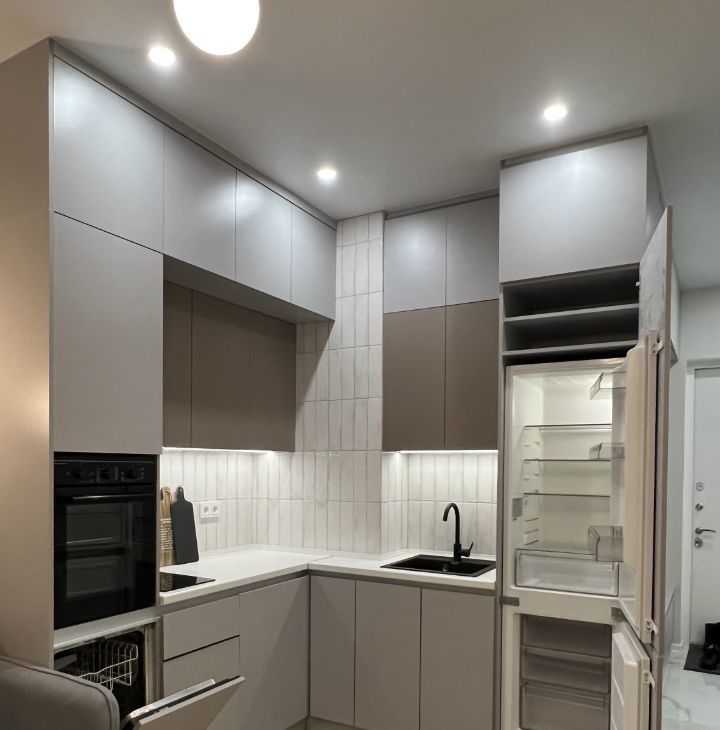 Уютная евродвушка. В квартире есть вся необходимая техника (холодильник, посудомоечная машина, плита, духовка, вытяжка, телевизор, стиральная машина
