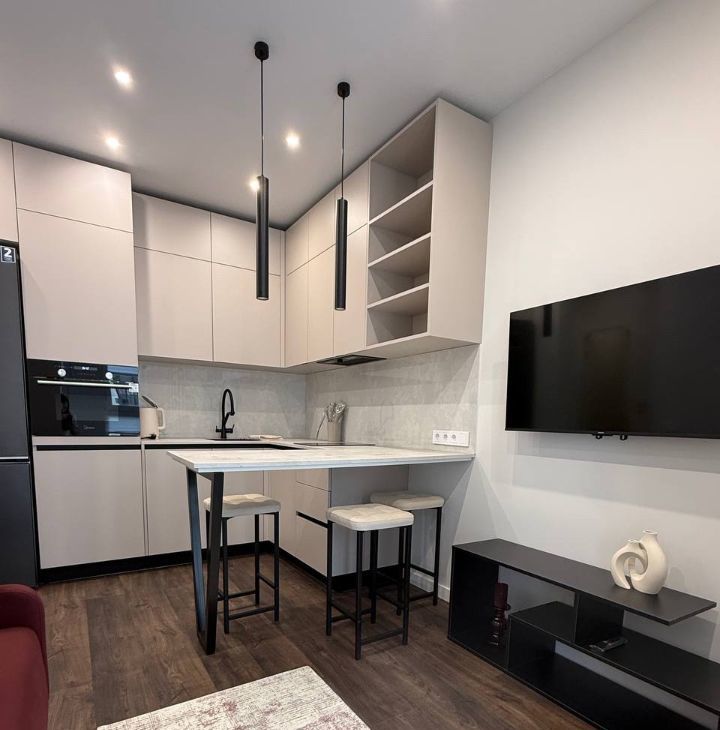 Квартира полностью меблирована всем необходимым для проживания. Техника от лучших производителей, причем предусмотрено все до мелочей.