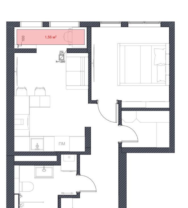 Грамотно продумана планировка: Кухня- гостиная и отдельная спальня. На балконе можно обустроить рабочее пространство, так как он полностью утеплен. Гардеробная комната и просторный совмещенный санузел. Все идеально продумано и каждая вещь на своем месте.