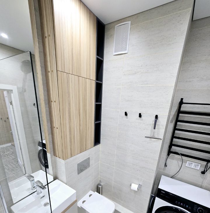 С/у совмещен с качественной отделкой и сантехникой. Застекленная лоджия. Панорамный вид из окон.