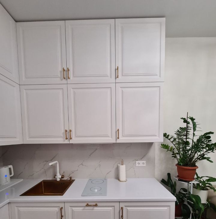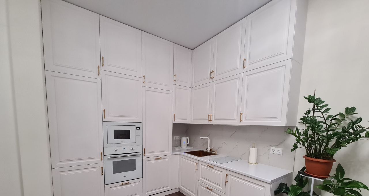 Новым владельцам остаётся все мебель и техника. Встроенная посудомойка, холодильник, духовой шкаф, микроволновая печь, индукционная плита, кондиционер. В кухне установлен фильтр для воды.