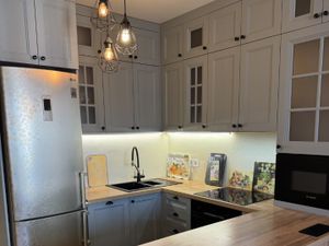 так же имеется: кондиционер, вместительный холодильник, чайник, вся необходимая посуда ( сервиз, сковородки, кастрюли,ложки и.т.д ) отпариватель для одежды, гладильная доска, пылесос ( дайсон ), сушилка для белья.