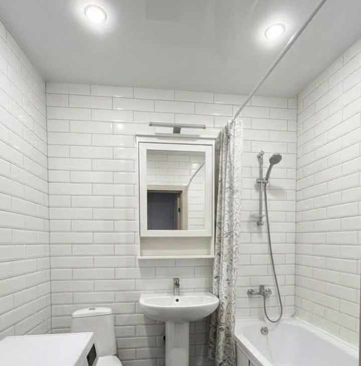 Санузел большой и совмещённый — ванна комфортная, светло и приятно.