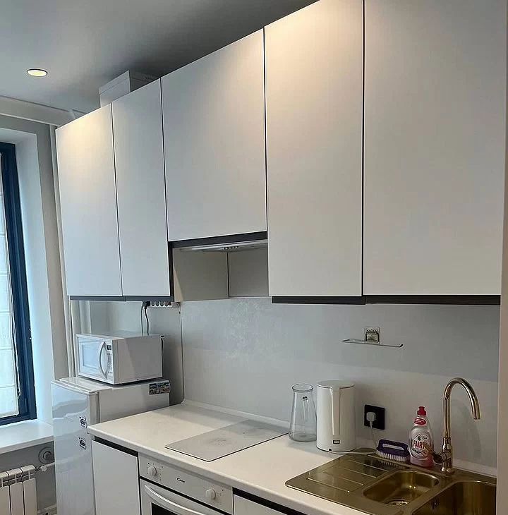 В Аппартаментах есть всё необходимое для комфортного проживания. Свежий ремонт, а значит, вас ждут свежие и чистые помещения. На кухне площадью 8 кв. м есть мебель и вся необходимая техника: кондиционер, холодильник и стиральная машина. Ванная комната оборудована современной душевой кабиной, что особенно удобно для активной жизни в городе.