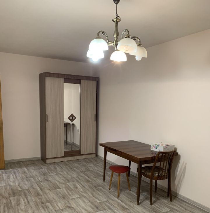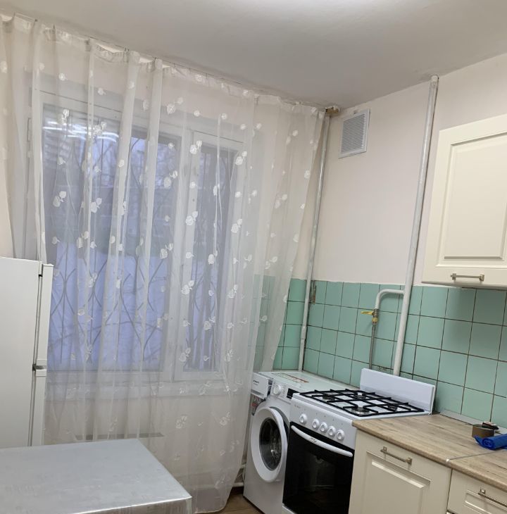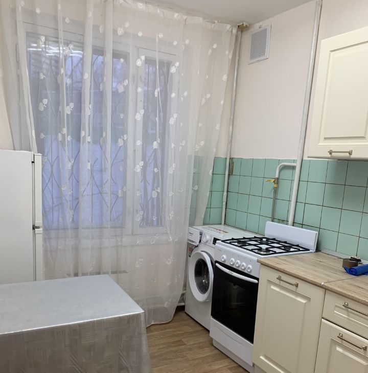 В квартире выполнен частичный косметический ремонт. На полу линолеум. Просторная комната с окнами во двор, мебель: двуспальный диван, шкаф купе, стол . На кухне всё необходимое: новый кухонный гарнитур, обеденный стол, холодильник и стиральная машина. Пылесос. Покупка СВЧ -печь обсуждается.