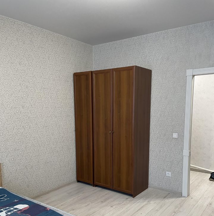 В квартире есть двуспальная кровать, шкаф, компьютерный стол, стиральная машина, холодильник, телевизор, духовой шкаф.