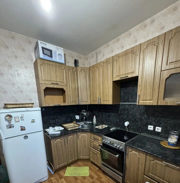 Квартира с косметическим ремонтом, что создаёт уютную атмосферу. В комнате и на кухне есть необходимая мебель. Кухня встроенная просторная, площадью 10 кв. м, оборудована холодильником. В квартире также установлена стиральная машина. Высота потолков 2.64 метра, а окна выходят во двор, поэтому вас не будут беспокоить шумные улицы. Санузел совмещённый, есть ванна. Лоджия добавляет дополнительное пространство для отдыха или хранения.