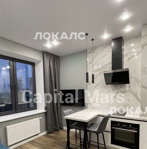 В комплексе "ЛЕНИНГРАDКА 58", недалеко от метро "Водный стадион", предлагается однокомнатная квартира. В комнате имеется комфортная кровать, система хранения. Просторная кухня с дополнительной зоной отдыха укомплектована встроенной техникой, в том числе посудомоечной машиной. Есть вместительная гардеробная. Установлены кондиционер и полы с подогревом. В ванной - душевая кабина.