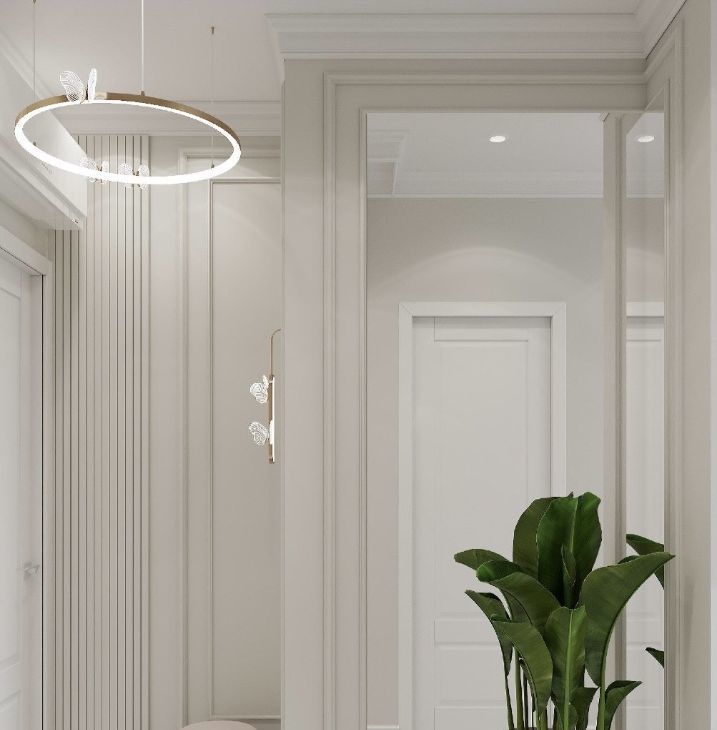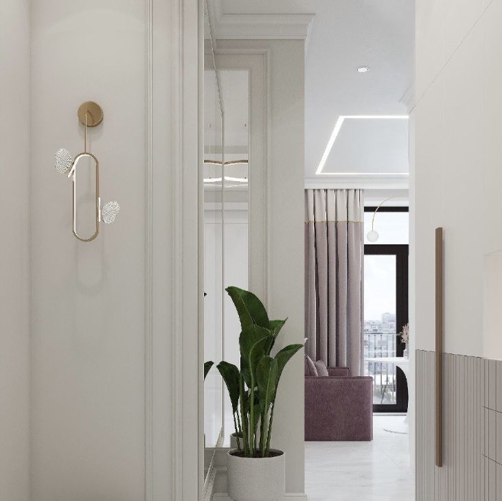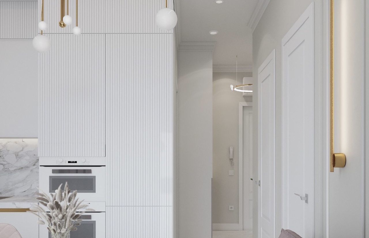 светлая благородная гамма, современные фактуры, встроенные решения и акценты, которые делают интерьер дорогим и чистым.
