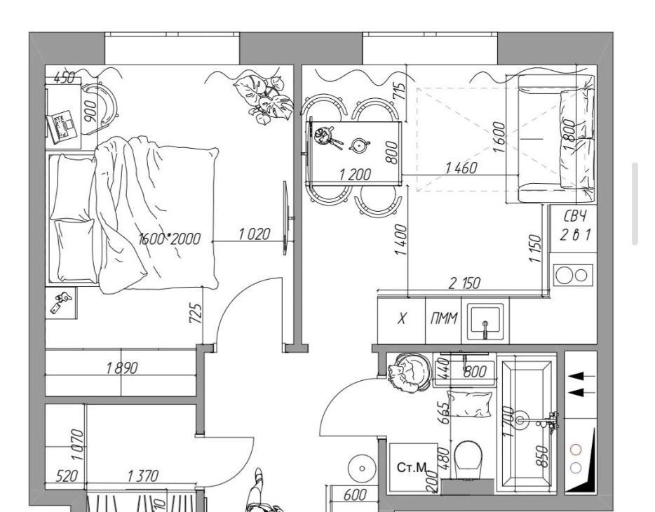 Квартира полностью укомплектована всей необходимой техникой и качественной мебелью. В вашем распоряжении кондиционер, стиральная и посудомоечная машины, телевизоры, холодильник, а также полноценная меблировка кухни и жилой зоны. Особого внимания заслуживает практичная планировка с изолированной комнатой, просторной кухней-гостиной и совмещённым санузлом с ванной. Квартира оборудована гардеробной!