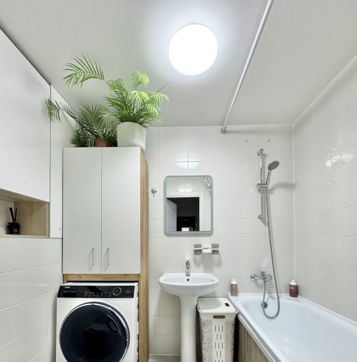 В квартире есть все необходимое для проживания: Большая вместительная кухня с фильтром для питьевой воды, чайник с функцией термопот, посудомоечная машинка, микроволновая печь, индукционная плита, духовой шкаф, вытяжка, встроенный холодильник, стиральная машина с функцией сушки, утюг, гладильная доска, пылесос, телевизор, римские шторы блек аут на кухне и в спальне, гардеробная система, маскитные сетки на летний период.
