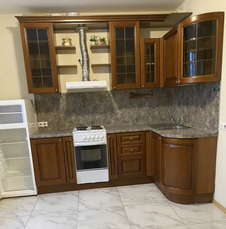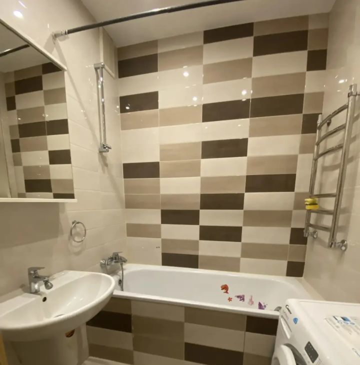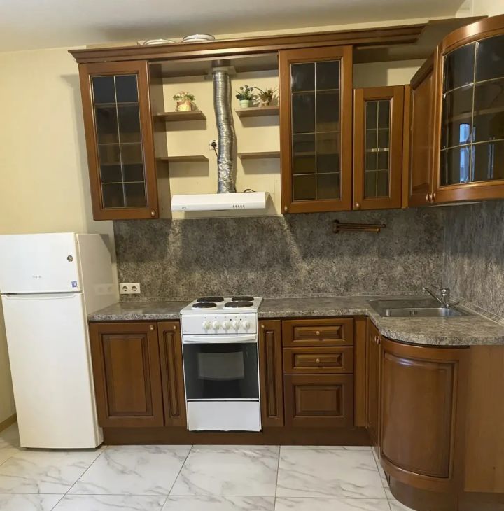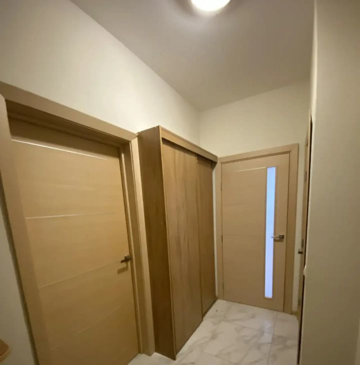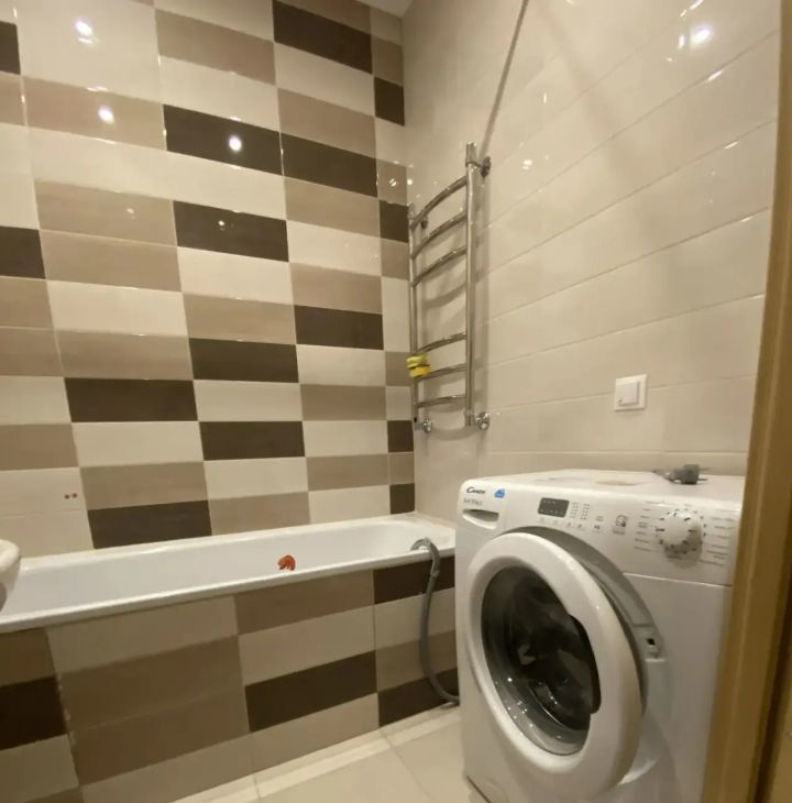 В квартире сделан современный евроремонт. В комнате встроенный шкаф купе на кухне встроенный кухонный и холодильник , что позволит вам сразу же почувствовать себя как дома. Из техники есть холодильник и стиральная машина. Ванная комната оснащена полноценной ванной. Окна выходят во двор, поэтому в квартире будет тихо и спокойно. Для удобства жильцов в доме работают два пассажирских и один грузовой лифт.