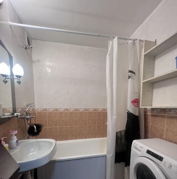 В квартире сделан косметический ремонт. Она полностью укомплектована всем необходимым для комфортного проживания: на кухне и в комнате есть мебель, установлены холодильник и стиральная машина. Планировка квартиры включает в себя одну застекленную лоджию и совмещённый санузел с ванной.