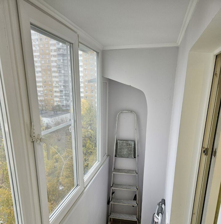 Лоджия застеклена и утеплена, что позволяет использовать ее круглый год. Из окон открывается вид на зеленый двор.