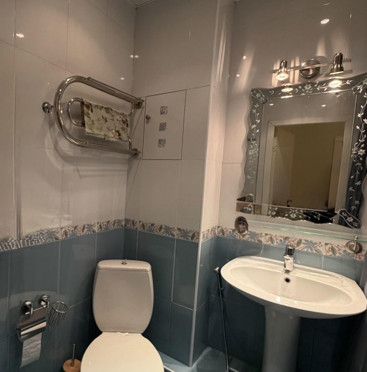 Санузел совмещенный, небольшой, но уютный, все необходимое есть. В прихожей есть вместительный встроенный шкаф.