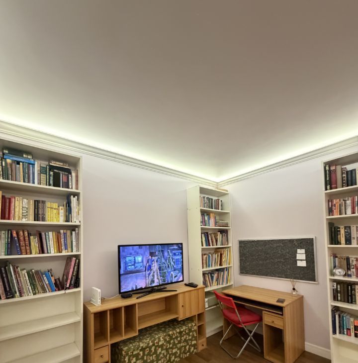 В комнате большой раскладной диван, телевизор, оборудовано небольшое офисное пространство. Есть скоростной интернет, wi-fi