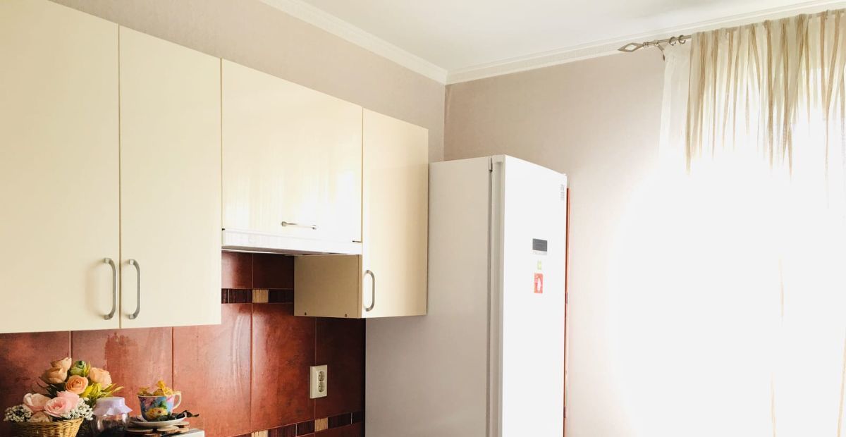 В квартире остаётся кухонный гарнитур, шкафы и бытовая техника. Один взрослый собственник. Свободная продажа.