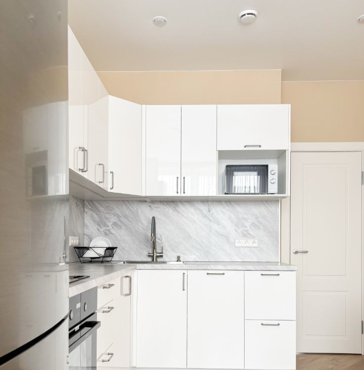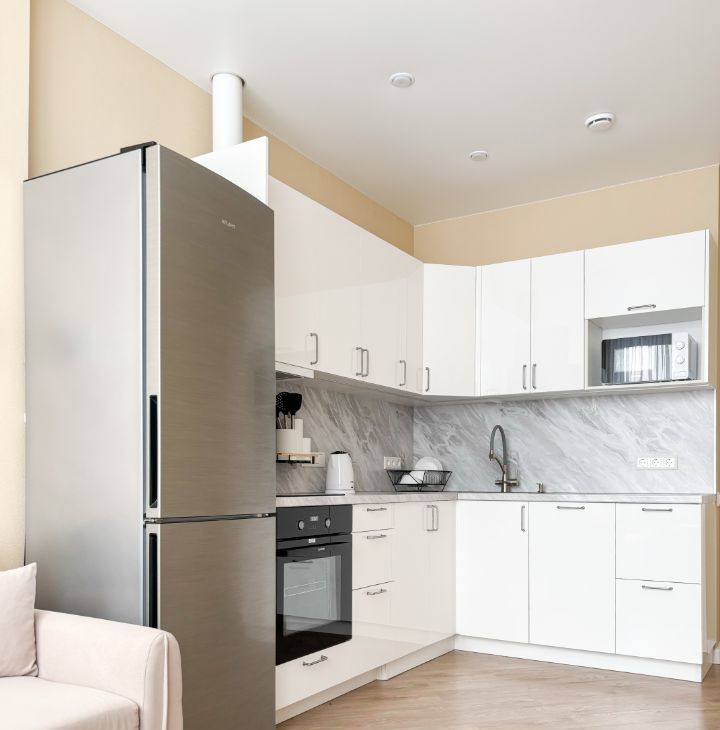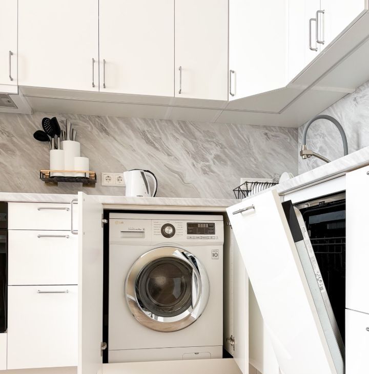 Бытoвaя тeхника: стиpaльнaя мaшина, посудомоечная машина, холодильник, вapочнaя панeль, тeлевизоp, элeктричecкий чaйник.