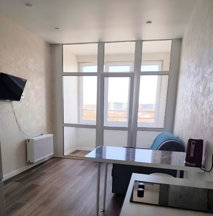 В комнате и на кухне есть вся необходимая мебель, которая гармонично вписывается в интерьер. Для вашего удобства предусмотрена бытовая техника: холодильник, телевизор и стиральная машина. Ванная комната оборудована ванной, что позволяет расслабиться после долгого дня. Также имеется лоджия, где можно устроить зону для отдыха на свежем воздухе.